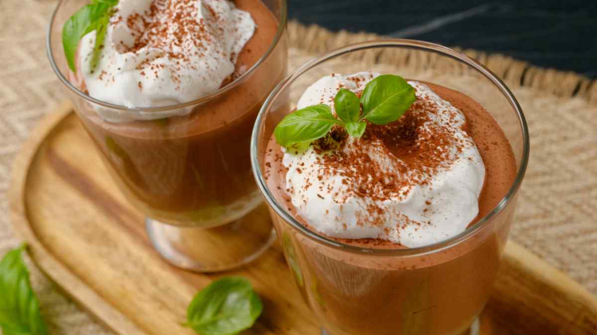 Garnish- chocolate shavings and basil