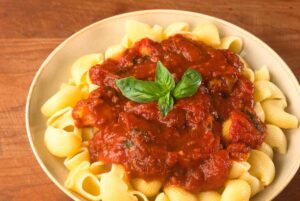 It wouldn’t be summer without fresh tomato sauce made from garden tomatoes and basil. This recipe is versatile and is great over pasta especially homemade pasta (see our recipe for ravioli and cavatelli) but it can also be enjoyed over chicken or fish.