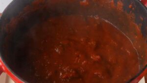 - Add the cut tomatoes, tomato paste, sugar and white wine.