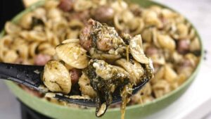 This was always a hassle free, quick midweek meal in our home. The bitterness from the broccoli rabe pairs well with the savory sausage flavors and the pasta blends the two flavors well.