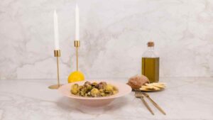 8. Add the lemon juice, bouillon cube and drizzle more olive oil over the broccoli rabe.
