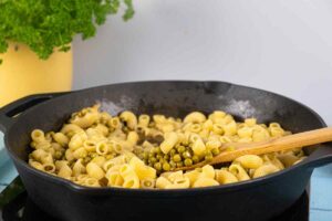 this pasta and peas dish is a simple and versatile Italian meal that can range from a quick, weeknight butter-and-cheese toss to a more complex dinner.