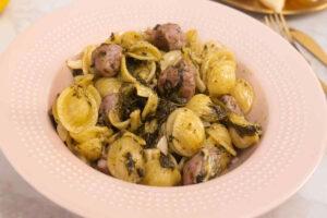 Read MoreOrecchiette with Sausage and Broccoli Rabe This was always a hassle free, quick midweek meal in our home. The bitterness from the broccoli rabe pairs well with the savory sausage flavors and the pasta blends the two flavors well. Ingredients 1 lb Orecchiette pasta 1 large bunch broccoli rabe 4 sweet Italian sausages cut into bite size pieces ½ cup pecorino romano cheese 4 large cloves garlic chopped ½ cup extra virgin olive oil 1 chicken bouillon cube 1 lemon quartered 1 tsp salt ½ tsp black pepper ¼ tsp red pepper flakes Directions 1. Boil the water for the […]