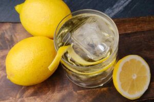 4. Squeeze the lemon or grapefruit rind into the glass.